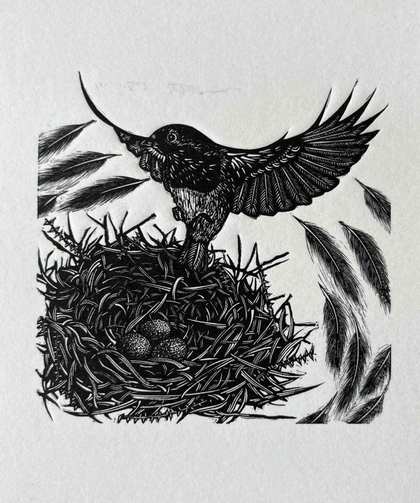 A little wood engraving only 7x7cm… This robin is called spitfire, she is protecting her 3 little eggs from the elements. Spring is just round the corner and this little birds brings message of new beginnings and hope for 2023…