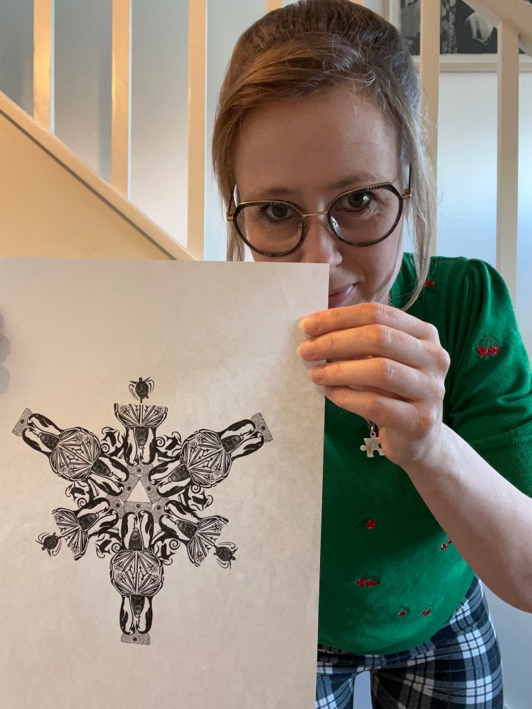 This pattern is made from 3 little blocks… Penguins, sharks and a turtle… I have hand burnished them on tosa washi paper… It’s a test print…