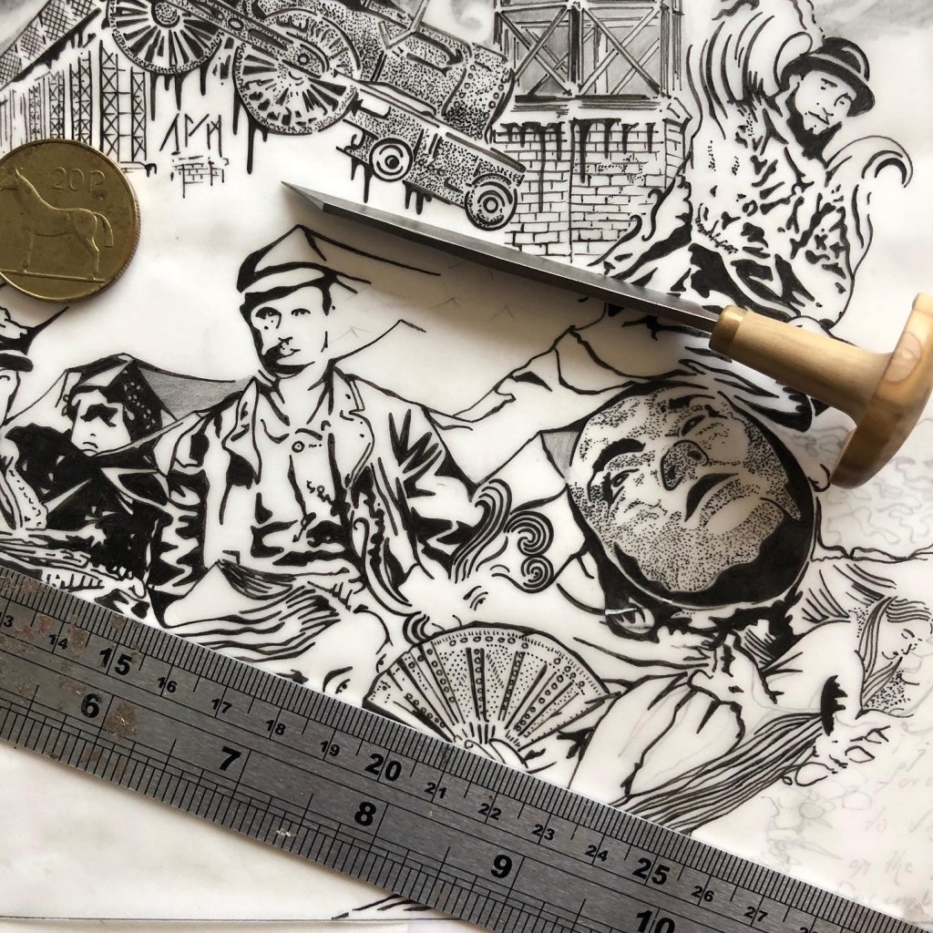 Press play to see few examples of illustrations made in 2022. You can see the scale of these illustrations next the ruler.